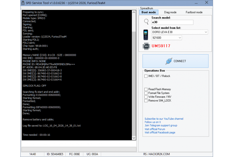 04 February 2026What's new !? NOKIA 2660 FLIP (TA-1711) SECURITY/PHONE CODE READ - MENU MATRIX CONFIG - RESTORE NV NOKIA 110 4G DS (TA-1662) SECURITY/PHONE CODE READ - MENU MATRIX CONFIG - RESTORE NV ADDED A WARNING ON NOKIA 230 REGARDING THE CORRECT MODEL…