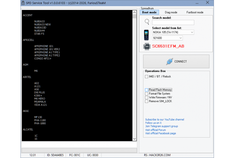 - READ/WRITE FIRMWARE - REPAIR IMEI - NETWORK UNLOCK - REMOVE SECURITY/PHONE CODE - READ/WRITE NV